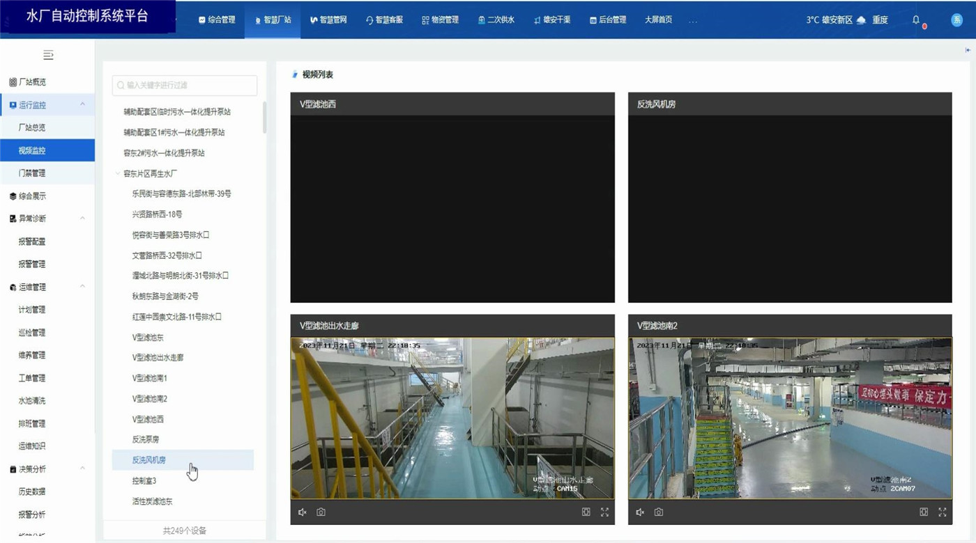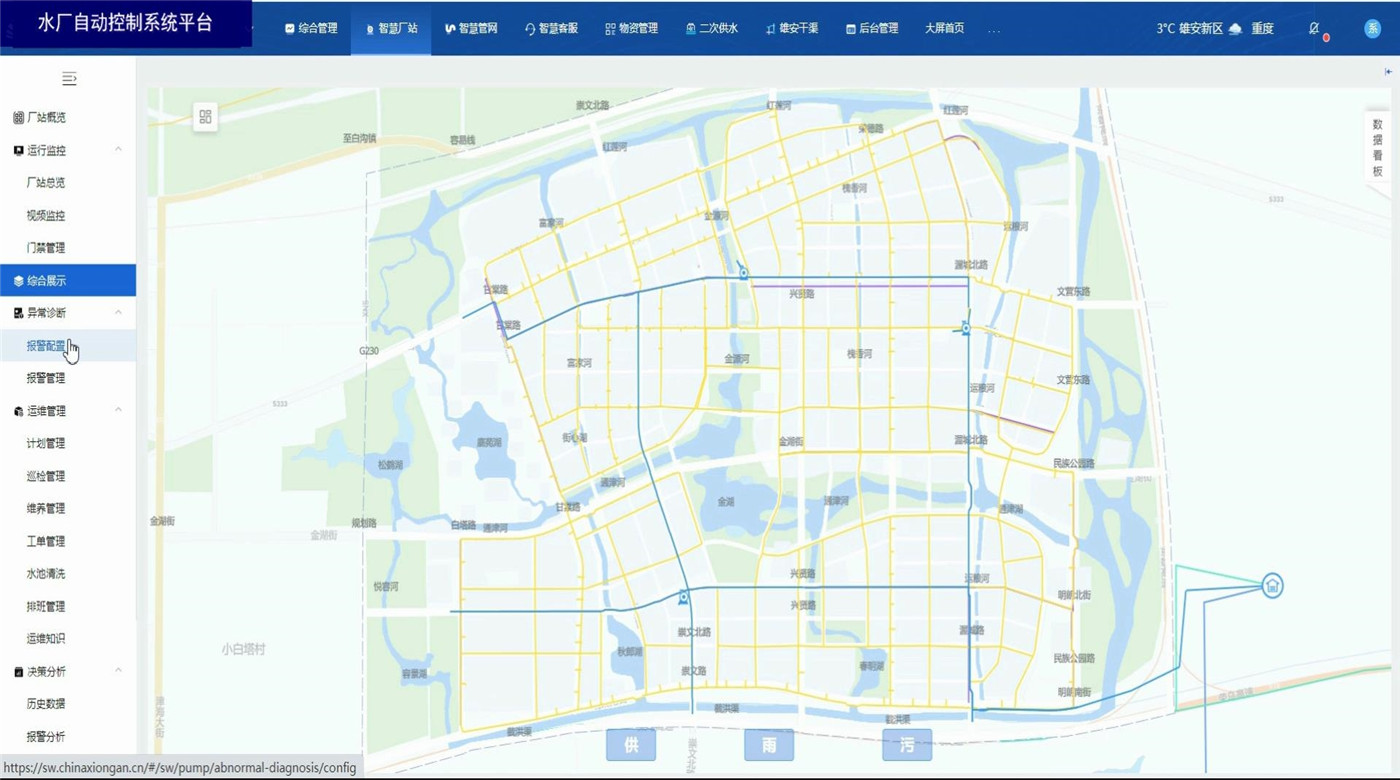 水廠自動(dòng)控制系統(tǒng)平臺(tái)基于B/S結(jié)構(gòu)(瀏覽器、服務(wù)器模式),通過在電腦上使用瀏覽器登錄平臺(tái)賬號(hào),即可實(shí)時(shí)監(jiān)控廠站運(yùn)行數(shù)據(jù)和相關(guān)圖表報(bào)告。同時(shí)具備視頻監(jiān)控、門禁管理,異常數(shù)據(jù)報(bào)警,廠站巡檢、設(shè)備定期養(yǎng)護(hù)功能。具備設(shè)備地圖定位顯示,歷史監(jiān)測(cè)數(shù)據(jù)信息的查、下載和統(tǒng)計(jì)分析。利用智能算法評(píng)估實(shí)時(shí)監(jiān)測(cè)數(shù)據(jù),在管網(wǎng)異常情況下及時(shí)進(jìn)行風(fēng)險(xiǎn)報(bào)警。